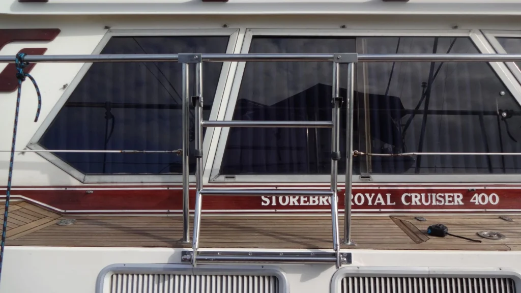 クルーザーの曲面形状に違和感なく収まる可動式ラダーを特注製作。入念な採寸と図面修正を重ね、片側ずつ確認しながら高精度に仕上げました。対応力と完成度に高い評価をいただいています。